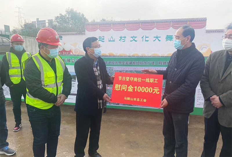 1月28日上午,馬鞍山市人大常委會(huì)黨組成員、一級(jí)巡視員、市總工會(huì)主席楊勇義一行深入安徽省交通建設(shè)股份有限公司承建的寧蕪改擴(kuò)建黃梅山保通線項(xiàng)目部,慰問一線員工,值此新春來臨之際,把黨和政府及工會(huì)組織的溫暖送到奮戰(zhàn)一線的員工手中。