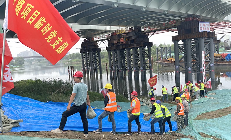 本次演練背景為連續(xù)強(qiáng)降雨天氣,南淝河水位持續(xù)上漲即將突破警戒線(xiàn),隨時(shí)會(huì)洪水破堤淹沒(méi)施工便道圍堰堤壩、危害周?chē)用褙?cái)產(chǎn)及生命安全……險(xiǎn)情告急!
