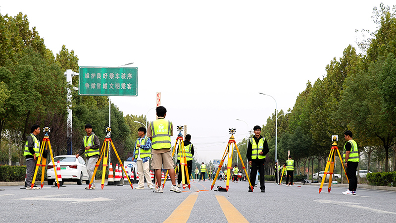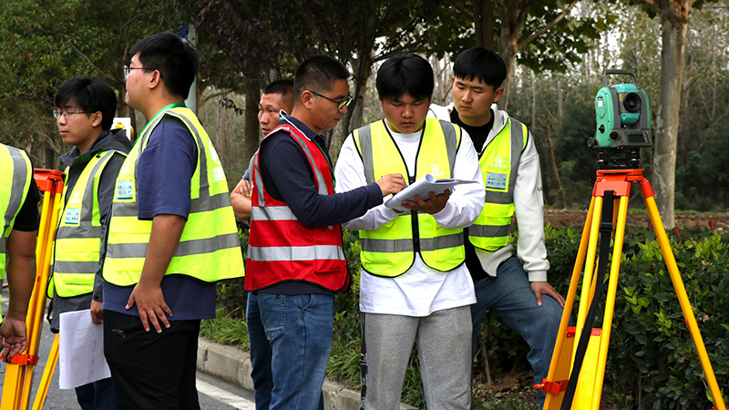 次日上午,在安徽交建大連路項(xiàng)目竣工封閉路段,學(xué)員早已準(zhǔn)備充分、躍躍欲試。在“全站儀對(duì)點(diǎn)賽”和“水準(zhǔn)+導(dǎo)線”技能競(jìng)賽,導(dǎo)師互換小組以裁判的身份進(jìn)行全程跟蹤,依據(jù)各組完成時(shí)間、操作規(guī)范性、測(cè)量結(jié)果以及第一天的理論成績(jī)綜合評(píng)判最終結(jié)果。