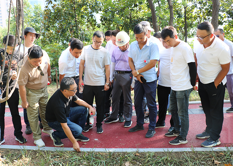 活動(dòng)期間,安徽交建2019經(jīng)開(kāi)慢行項(xiàng)目經(jīng)理吳金忠分享了施工管理的經(jīng)驗(yàn),針對(duì)慢行系統(tǒng)側(cè)石、透水混凝土、仿石材道板磚鋪裝、聚合物盲道以及瀝青混凝土面層施工工藝流程的控制,到邊到拐等細(xì)節(jié)處理方面與在場(chǎng)的專(zhuān)家進(jìn)行了深入的交流和探討。