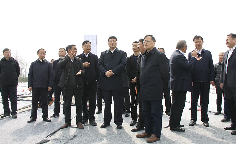 3月5日,安徽省副省長何樹山一行蒞臨安徽交建承建的固蚌高速路基三標洪集樞紐處視察2021年“縣縣通高速”固蚌高速項目建設(shè)進展情況。蚌埠市市委書記黃曉武、安徽省交通廳廳長章義、安徽省交通控股集團董事長項小龍及總經(jīng)理錢東升、固蚌高速項目辦主任房濤、安徽交建固蚌高速GB-3標項目經(jīng)理程海波陪同。