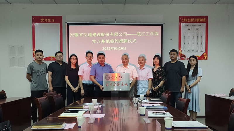 皖江工學院黨委副書記、紀委書記張勤,土木工程學院院長陳禮和,土木工程學院黨總支副書記王瑜,交建股份黨委副書記、董事長助理陳光龍,副總工程師宣菲,人力資源中心總經理吳海燕等出席了簽約授牌儀式。