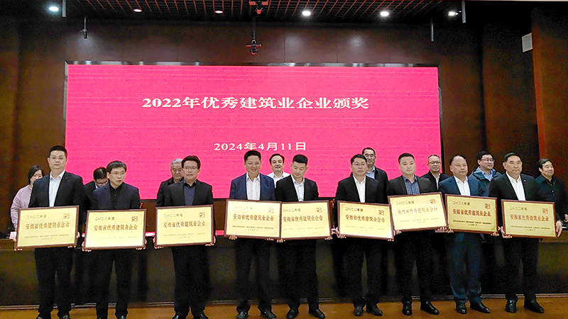 會議傳達(dá)學(xué)習(xí)了全國住房城鄉(xiāng)建設(shè)工作會議、全省創(chuàng)建一流營商環(huán)境暨推進(jìn)民營經(jīng)濟(jì)高質(zhì)量發(fā)展大會有關(guān)精神,分析研判安徽省建筑業(yè)發(fā)展形勢和應(yīng)對策略,并通報(bào)表彰了“2022年度安徽省優(yōu)秀建筑業(yè)企業(yè)”、“2022年度安徽省建筑業(yè)龍頭骨干企業(yè)”。會議現(xiàn)場傳來喜訊,安徽交建獲評“安徽省優(yōu)秀建筑業(yè)企業(yè)(綜合基礎(chǔ)設(shè)施總承包類)”、“安徽省建筑業(yè)龍頭企業(yè)”榮譽(yù),常務(wù)副總裁兼總工程師儲根法參會并上臺領(lǐng)獎。